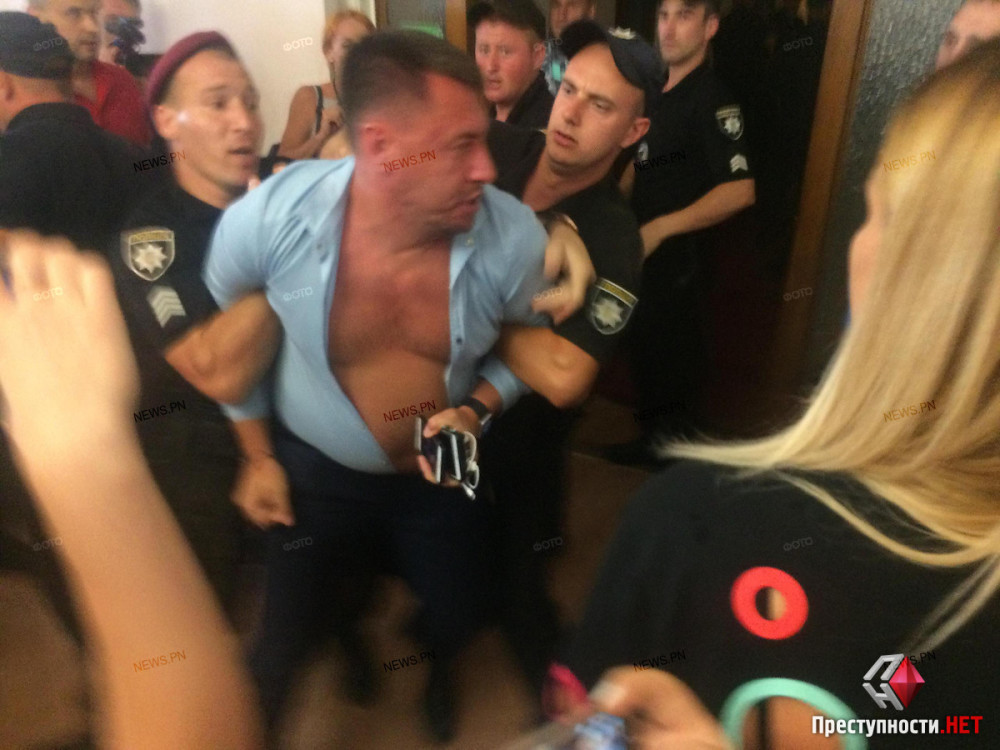 С момента начала пленарного заседания и активисты находились в сессионном зале. В перерыве они вышли в коридор, где, увидев директора КП Александра Голобродского, в очередной раз начали выкрикивать «Ганьба!». В результате между зоозащитниками и сторонниками эвтаназии началась потасовка. Неизвестная женщина из зоозащитников облила водой директора КП «Центр защиты животных» Александра Голобродского.