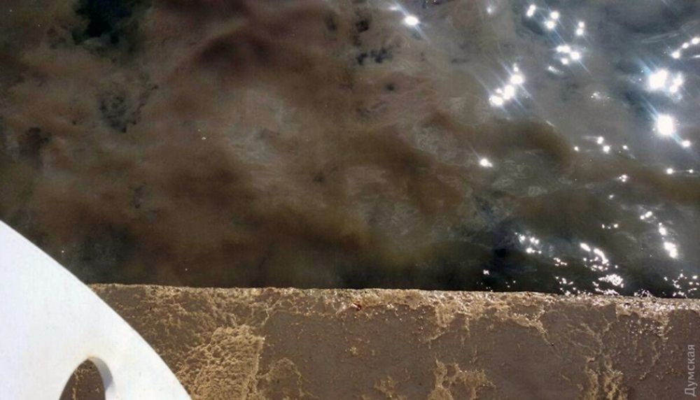 В Одессе на набережной возле дельфинария «Немо» заметили зловонные потоки воды коричневого цвета, вытекающие в море.