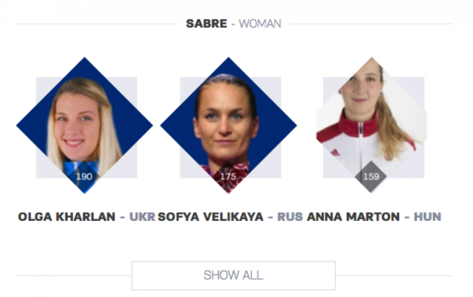 Николаевская фехтовальщица Ольга Харлан закончила нынешний сезон на первой строчке мирового рейтинга FIE, имея в активе 190 очков. Таким образом украинская саблистка оставила позади россиянку Софью Великую и венгерку Анну Мартон.