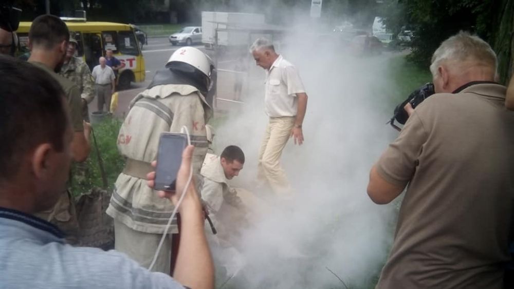 Как видно на видео телеканала ZIK с места событий, мужчина облил себя жидкостью и поджег.