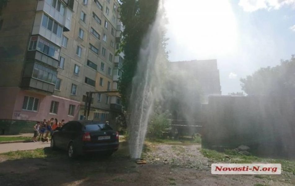 В Николаеве во дворе дома по ул. Космонавтов произошел прорыв водопровода, в результате которого из-под земли стал бить фонтан, достигающий уровня 6 этажа. Об этом пишут Novosti-N.