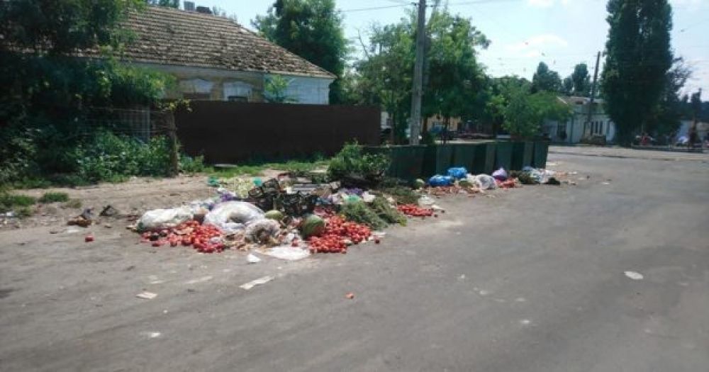 По словам женщины, продавцы овощей, которые торгуют по ул. Дунаева ежедневно выбрасывают испортившиеся овощи прямо возле мусорных контейнеров, но никто это не убирает.