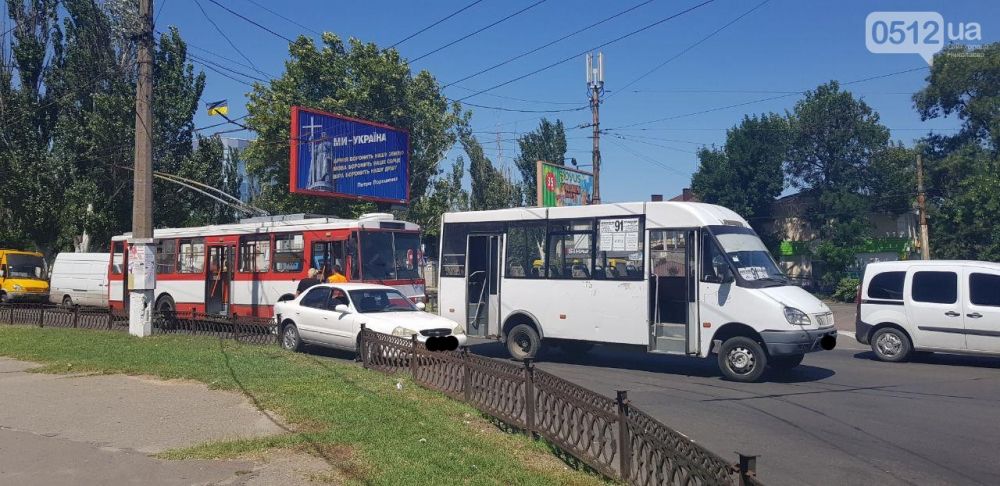 В четверг, 9 августа, в центре Николаева маршрутка столкнулась с легковым автомобилем Kia.