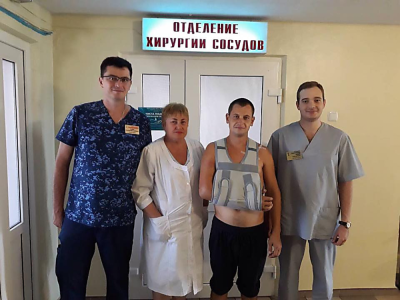«Машиной скорой медицинской помощи в приемный покой Николаевской городской больницы № 3 был доставлен пациент Ш., 27 лет, с колото-резаной раной верхней трети внутренней поверхности правого плеча с повреждением основного сосудисто-нервного пучка (размозжение на протяжении плечевой вены, артерии, кожно-мышечного и срединного нервов). Пациент в неотложном порядке был взят в операционную. Учитывая крайне тяжелое состояние пациента (геморрагический шок III) и критическую ишемию правой верхней конечности (тромбоз магистральных сосудов) для максимально быстрого восстановления кровоснабжения правой верхней конечности принято решения свести объем операции до наложения циркулярного шва на плечевую артерию, путем ее мобилизации, лигирования плечевой вены, наложения эпиневрального шва на кожно-мышечный и срединный нервы, тромбэктомии из плечевой и локтевой артерий. Выбранная тактика значительно ускорила проведение операции, что практически не сказалось на послеоперационных результатах. Кровообращение кисти компенсировано полностью. Отмечается значительный объем движений в пальцах кисти. На данный момент пациент находится в условиях отделения сосудистой хирургии в стабильном состоянии со значительной положительной динамикой. Желаем скорейшего выздоровления и возвращения к повседневной жизни», – говорится в сообщении.
