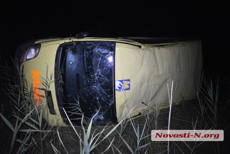 Микроавтобус ехал из Киева в Херсон. Под Николаевом, недалеко от поворота на с. Зеленый Гай, водитель не справился с управлением, микроавтобус резко изменил траекторию движения, выехал за пределы проезжей части, слетел в кювет и перевернулся.