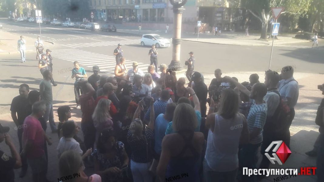Возле мэрии Николаева вечером 22 августа собрались общественники и зоозащитники. Общественники намерены выгнать зоозащитников из под здания мэрии и снести их палатки.