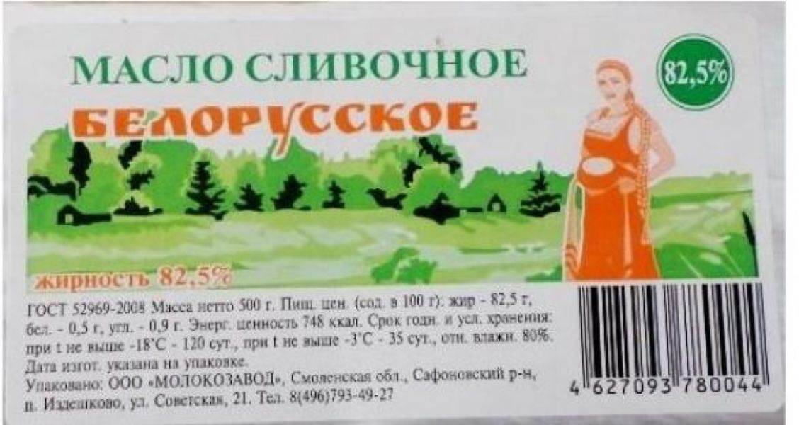В ходе проведения исследований продукта «Масло сливочное «Белорусское», 82,5% жира, установлено наличие 96% немолочного жира. Хотя на упаковке было написано «Масло», указано ГОСТ, по которым делают настоящее масло, и в составе продукта были указаны только сливки, при проведении лабораторных исследований обнаружили немолочный жир. Это могло быть и пальмовое масло, и кокосовое, и маргарины, и смеси на их основе. Но так или иначе это — не молочный жир. Следовательно, это не масло, это — фальсификат, — сказано в сообщении.