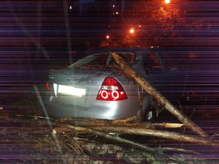 Ураганный ветер обломал ветки деревьев, а на улице Чигрина упал ствол дерева.