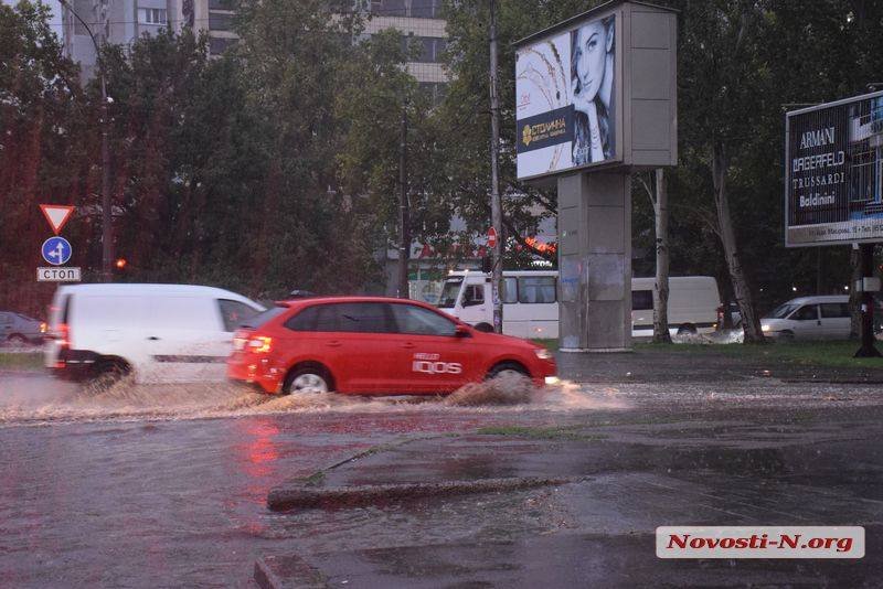 Непогода, как и прогнозировали синоптики, началась в понедельник, 24 сентября, после 17:00. Николаев накрыл ливень с сильными порывами ветра.