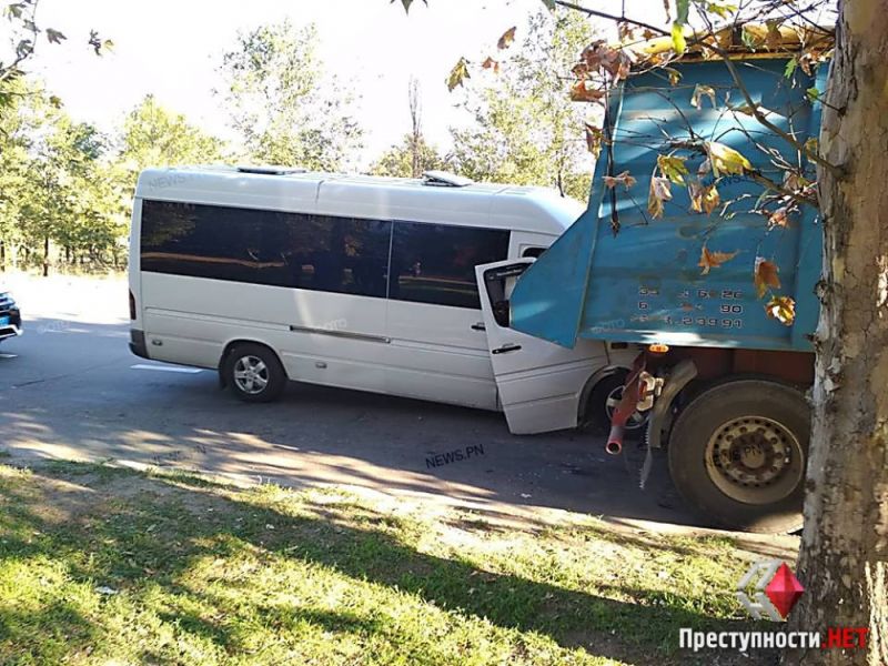 Утром в четверг, 4 октября, в Николаеве произошло дорожно-транспортное происшествие при участии маршрутного такси «Mercedes Benz Sprinter» и грузовика.