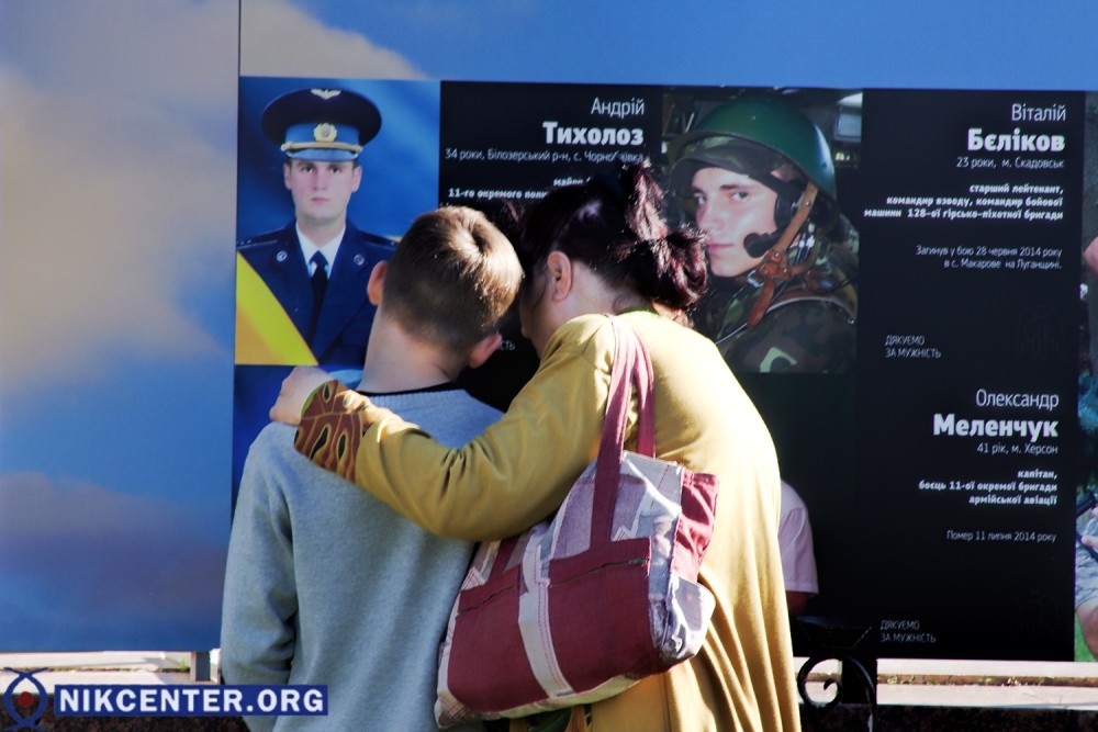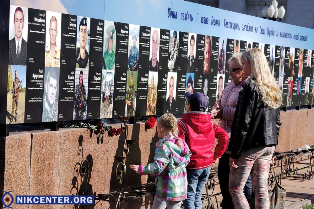 Также на плошади Свободы возле мемориала в честь херсонцев, погибших во время боевых действий на Востоке Украины, собирались их родственники, чтоб почтить память павших воинов.