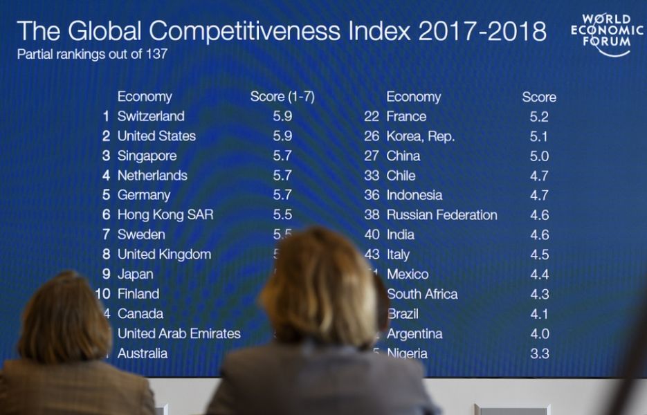 Индекс глобальной конкурентоспособности измеряет готовность стран к четвертой промышленной революции. Он имеет 12 составляющих. Это качество институтов, состояние инфраструктуры, проникновение IT и современных коммуникаций, макроэкономическая стабильность, потребительский рынок, рынок труда, финансовая система, размер внутреннего рынка, здоровье, образование и навыки, динамика бизнес-развития, способность к инновациям.