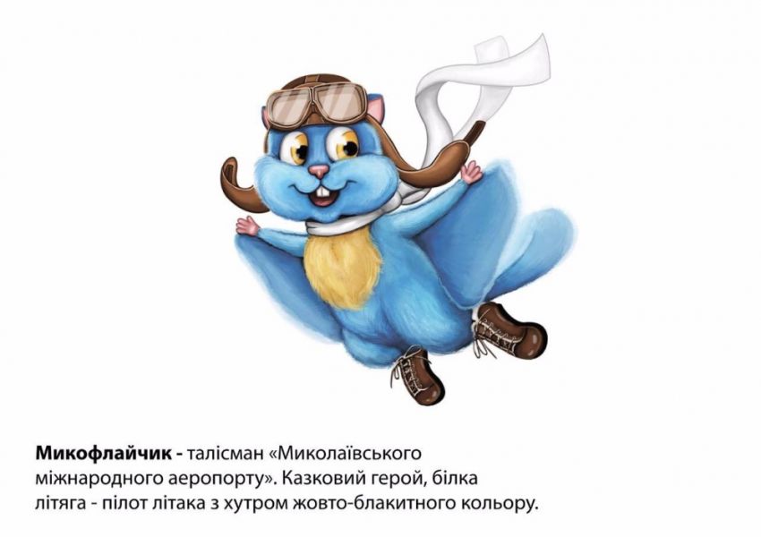 — Знакомьтесь, это — Микофлайчик. Прототип талисмана Николаевского аэропорта. Микофлайчика нам предлагают взять за основу для нового бренда предприятия. Это фантастический герой, пилот гражданской авиации – белка летяга. По задумке авторов, Микофлайчик, должен стать гидом для пассажиров и сопровождать людей от момента первого знакомства с аэропортом. Как пример, Микофлайчик может рассказывать о жизни предприятия в социальных сетях, и давать рекомендации, как удобнее и выгоднее всего покупать билеты. Он может жить в интернете, а оффлайн реализован на рекламных материалах и в виде плюшевой игрушки для самых маленьких пассажиров, сувенирных магнитов и т.д. Друзья, как вам? Может у кого будут ещё идеи?, — написал и.о. директора аэропорта.