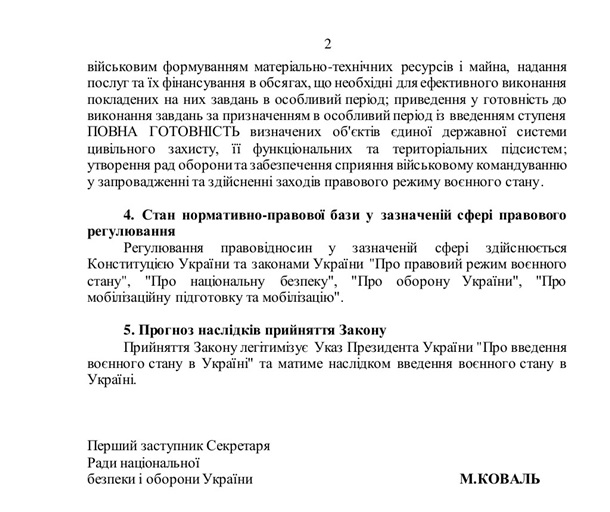 Позже на сайте Рады появилось дополнение к закону, в котором говорится, что введение военного положения предполагает ограничение прав и законных интересов юридических лиц в пределах и объеме, которые необходимы для обеспечения возможности введения и осуществления мер правового режима военного положения.