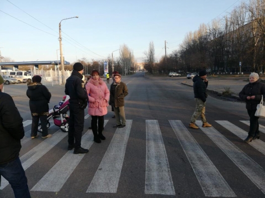 По состоянию на 14 часов около 20 митингующих ходили по пешеходному переходу. На месте работают сотрудники патрульной полиции.