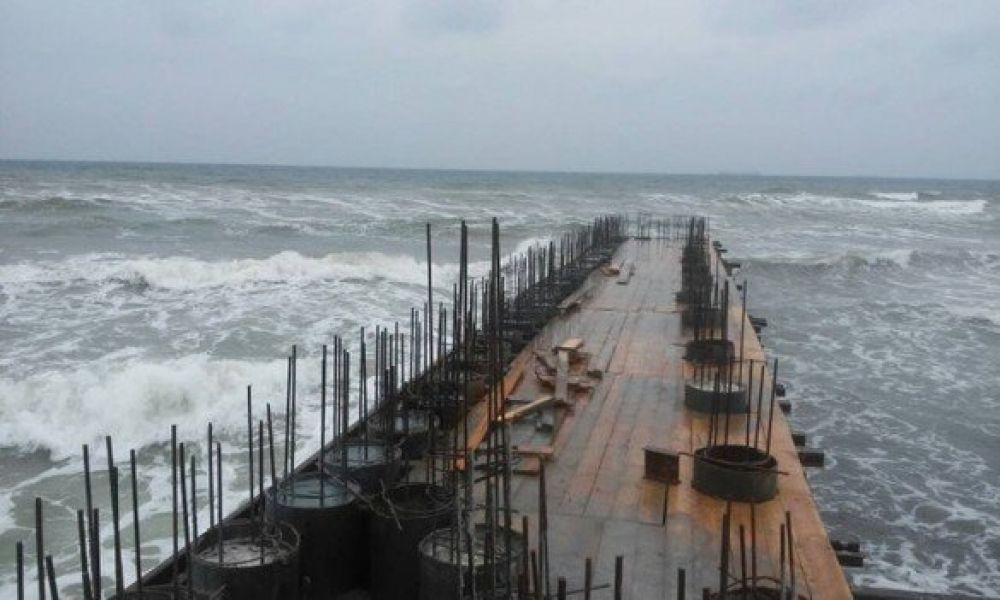 Отмечают, на данный момент строители приступили к наиболее сложному этапу работ с морской стороны. В общем защитное гидротехническое сооружение состоит из двух бун, которые выходят в море на 80 метров и останавливать наносные породы, течение и не допускать заиливания канала.