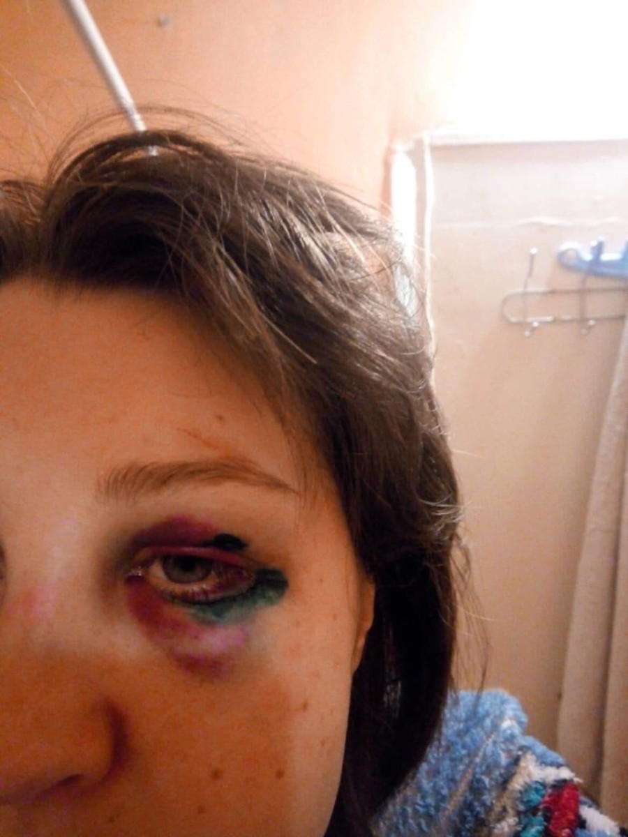 Водитель остановился на Соборной, открыл дверь, где-то минуты три я сидела и прикладывала салфетки к глазу, потому что шла кровь, а затем я начала проверять мою малышку. Слава богу, ей повезло, она обошлась лёгким ушибом и стрессом», — сообщила она.