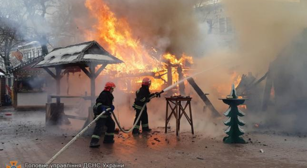 Во Львове 22 декабря на рождественской ярмарке произошел взрыв и пожар, по данным СМИ, взорвался баллон с газом. Один из домиков на ярмарке сгорел дотла. Информация о пожаре в торговом павильоне поступила спасателям в 13:15. Затем огонь перебросился на два соседних павильона. В 13:32 пожар удалось ликвидировать.