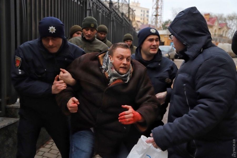 Напомним, утром во вторник полиция применила силу к участникам акции в Одессе в поддержку пленных украинских моряков, которая проходила возле генконсульства РФ. Митингующие хотели испачкать забор и ворота диппредставительства красной краской, символизирующей кровь, но правоохранители не дали им это сделать. В итоге краска разлилась на асфальт и участников акции. Двоих активистов задержали, в том числе и Пановского.
