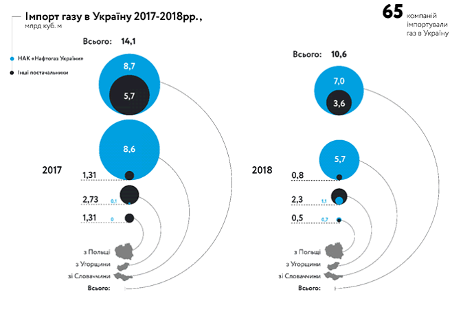 В целом в 2018 году газ в Украину импортировали 65 компаний (в 2017 году – 67 компаний).