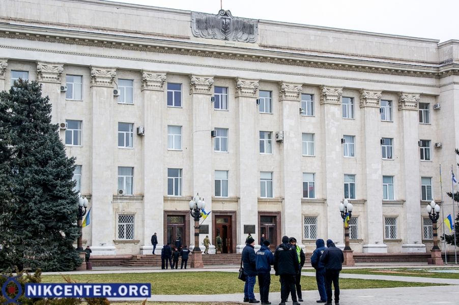 С раннего утра здание Херсонской ОГА и Херсонского облсовета было оцеплено сотрудниками полиции и бойцами Национальной гвардии. Также к зданию подогнали пожарную машину с водометом.