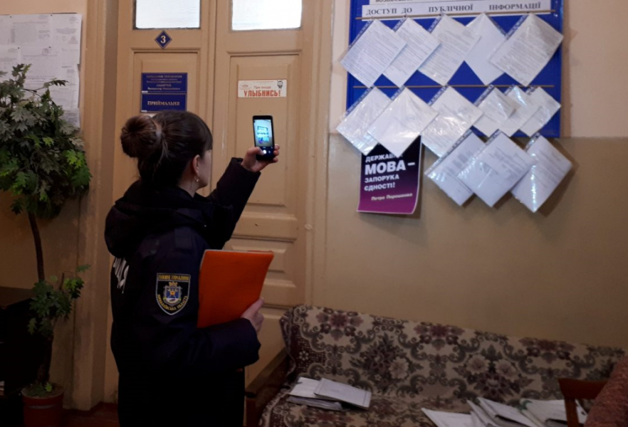 Начальник отдела обращений граждан, связей с общественностью и средствами массовой информации аппарата горсовета и его исполнительного комитета Оксана Подвысоцкая сообщила, что данные листовки висят на стенде уже давно, и поблагодарила наблюдателя за замечания. После разговора она сразу же сняла печатные материалы, содержащие признаки агитации.