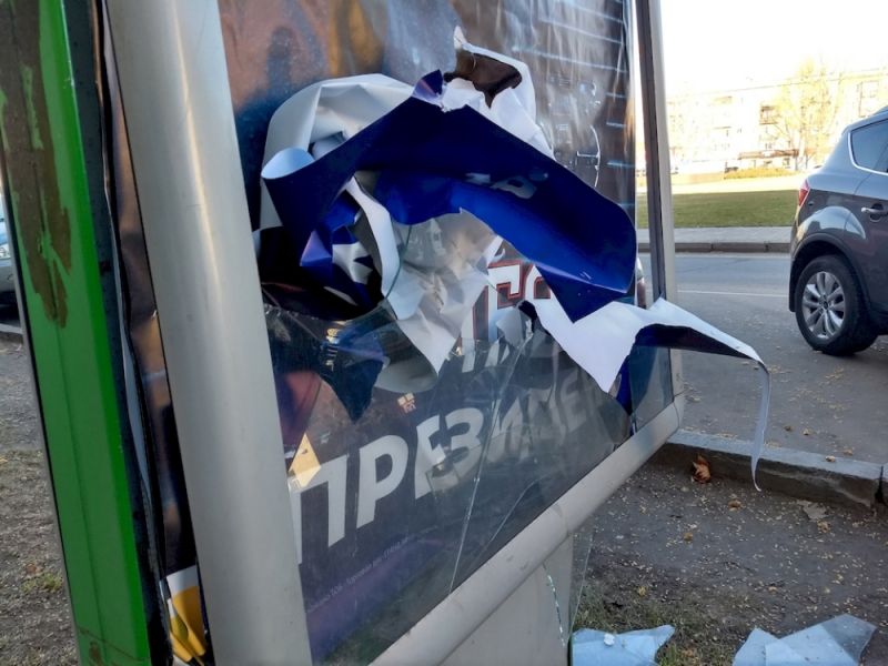 В Херсоне полиция устанавливает, кто повредил агитационныйе сити-лайты кандидата в президенты Украины.