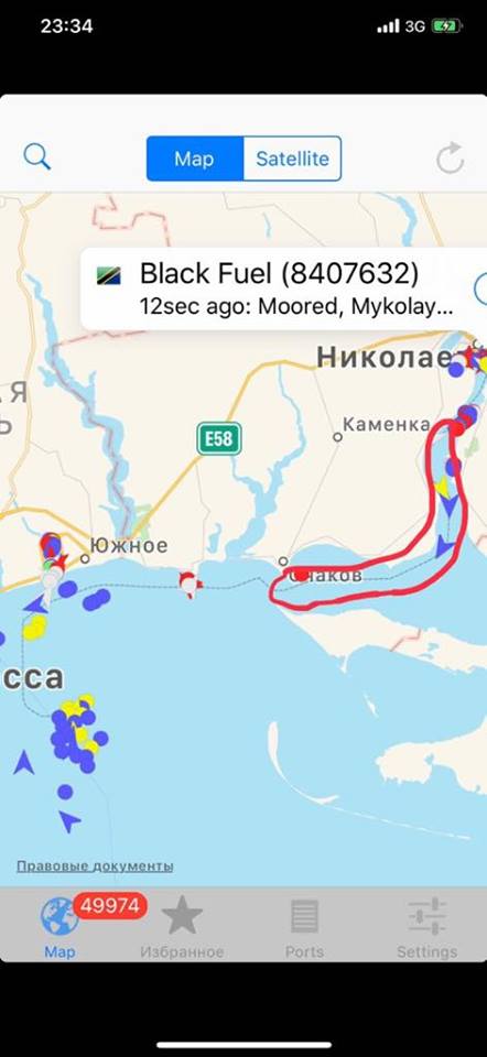 По его словам, судно «Black fuel» – частый гость Николаева, и регулярно заходит в порт с топливом.