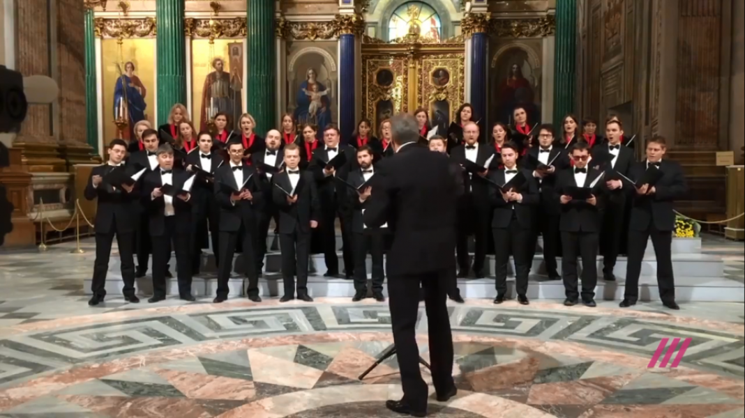 В Исаакиевском соборе во время праздничного концерта 23 февраля "Концертный хор Санкт-Петербурга" исполнил песню об атомной бомбардировке США.