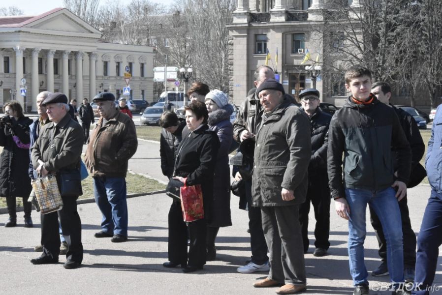 В четверг, 7 марта, на Соборной площади Николаева собралось около двух десятков человек, которые требовали наказать виновных скандала с подменой в городских учебных заведениях качественного масла на дешевый маргарин.