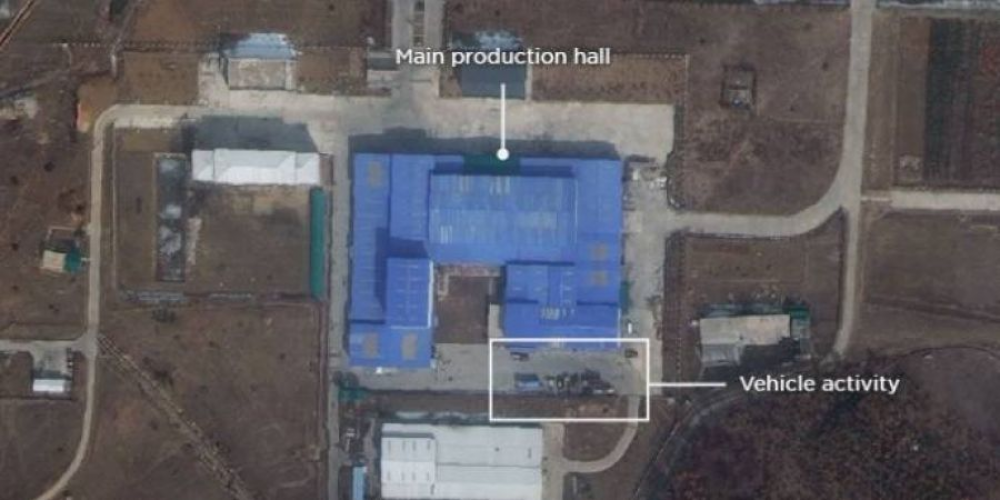 "На снимках, сделанных 22 февраля компанией DigitalGlobe, видно легковые автомобили и грузовики, припаркованные у объекта. Рядом — железнодорожные вагоны, где также установлены два крана", — отмечает издание.