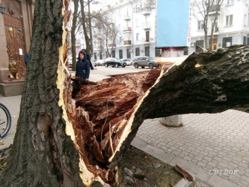 Напомним, что 5 марта, в Николаеве на улицу Большой Морской рухнул огромный тополь. Происшествие случилось на пересечении Б. Морской и Фалеевской. Дерево упало прямо поперек проезжей части на грузовую «Газель». К счастью, водитель вовремя заметил угрозу и буквально на ходу выскочил из салона, поэтому обошелся без травм. Как оказалось, дерево внутри было полностью трухлявым и не выдержало сильного ветра. Упавшее дерево полностью перегородило движение по Большой Морской. Кроме того оно оборвало контактную сеть, остановив движение электротранспорта.