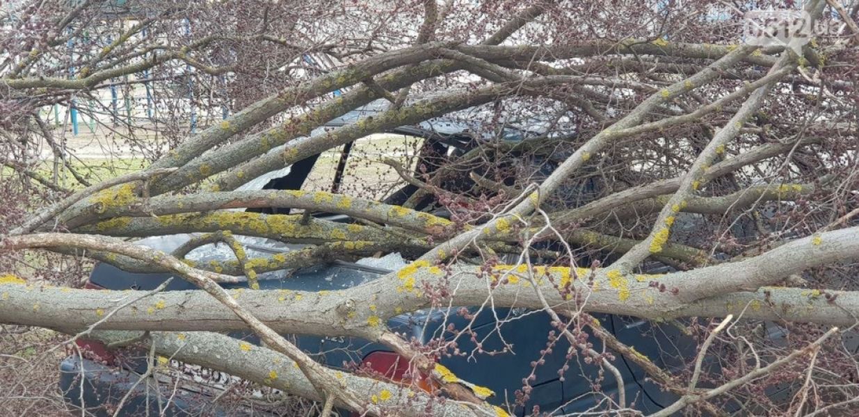 В четверг, 14 марта, в Николаеве во дворе жилого дома на припаркованный автомобиль упало дерево.