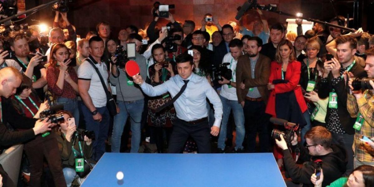 В ожидании результатов экзитполов (опросов на выходе из участков, которые, как правило, дают картину, близкую к реальным итогам голосования) лидер Студии Квартал 95 в поте лица сражался за победу: играл в настольный теннис с одним из многочисленных журналистов, аккредитованных в его штабе. И проиграл.