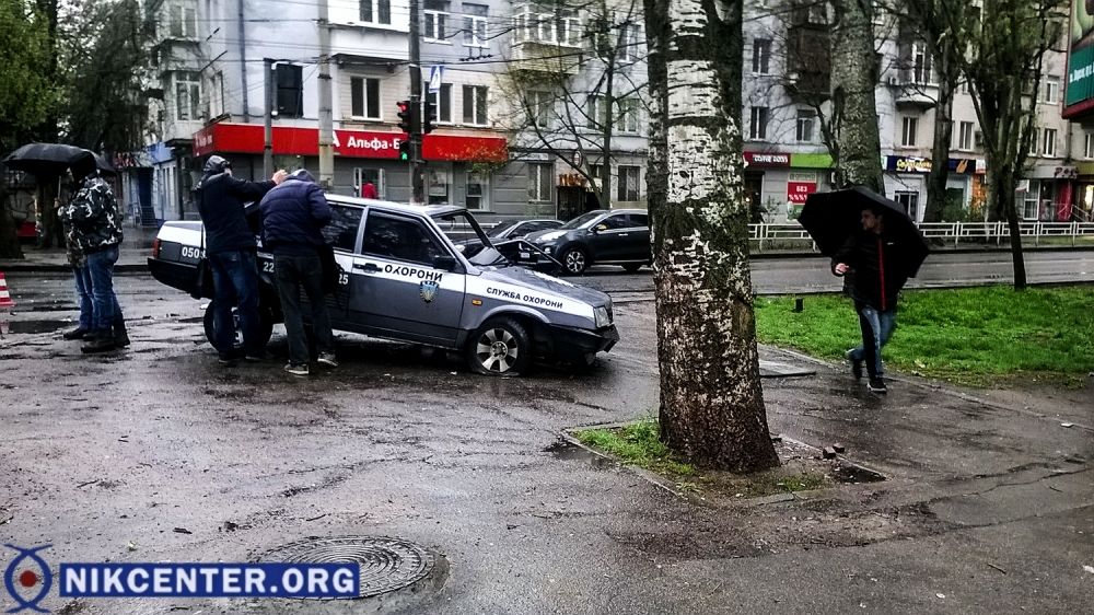 Сегодняшнее дождливое утро в Херсоне началось с аварии в центре города.
