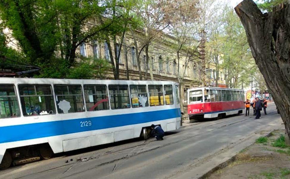 Во вторник, 30 апреля, в центре Николаева, трамвай, курсирующий по маршруту №1, сошел с рельсов.