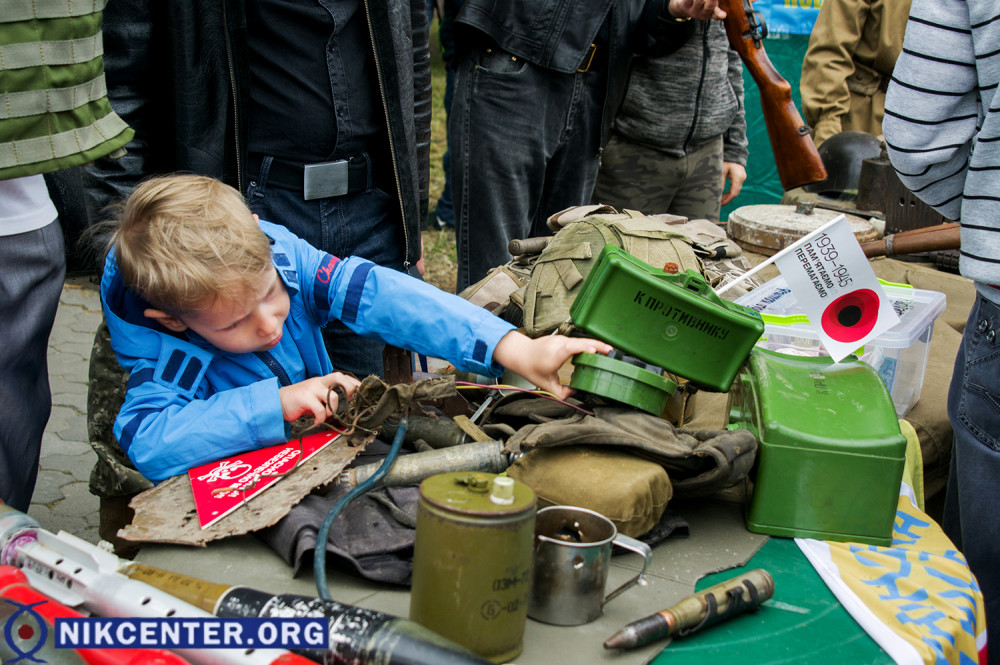 Также в парке была проведена выставка оружия времен Второй мировой войны, а также трофейного вооружения, привезенного украинскими военными, участвовавшими в боевых действиях в Донбассе.