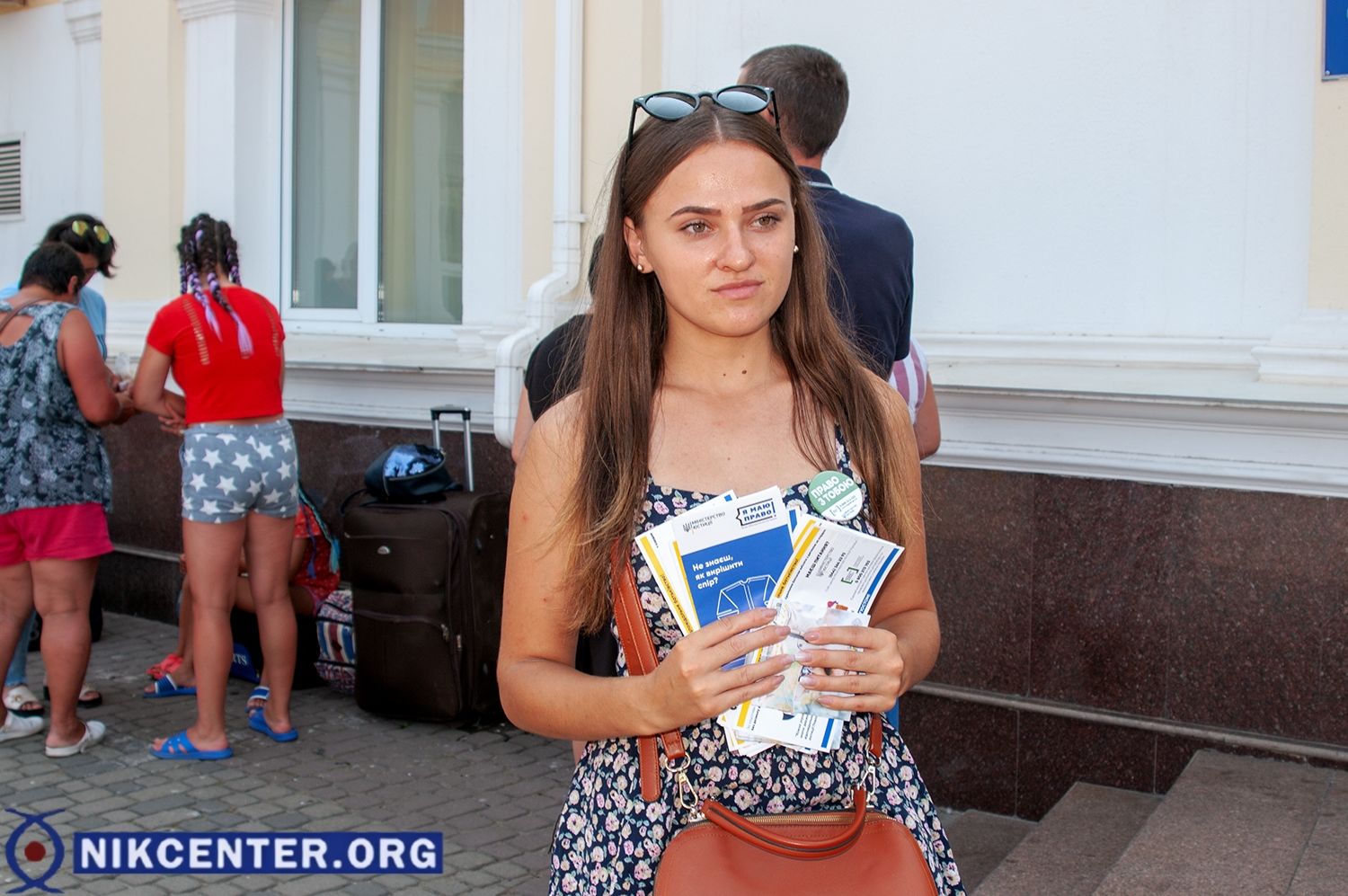 Представители Департамента социально защиты населения, Национальной полиции, главного территориального Управления юстиции в Херсонской области, Центра по предоставлению бесплатной правовой помощи, а также представители общественной организации «Успішна жінка» провели просветительскую акцию на железнодорожном вокзале Херсона.