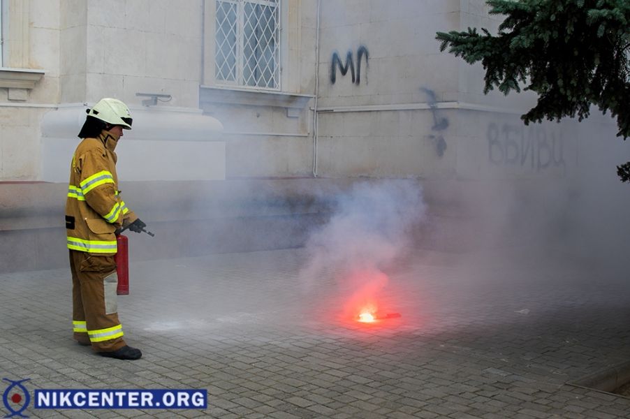Во время акции возле Херсонской ОГА между протестующими и сотрудниками полиции возник конфликт. Полицейские пытались помешать нанесению надписей на стены здания. Все ограничилось словестной перепалкой.