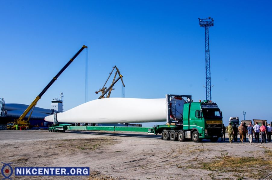 Судно доставило в Скадовск 15 лопастей для ветротурбин, каждая из которых имеет длину почти с 25-этажный дом (74 метра) и весит 17 тонн. Кроме лопастей на судне в Скадовск прибыли еще 90 тонн других комплектующих.