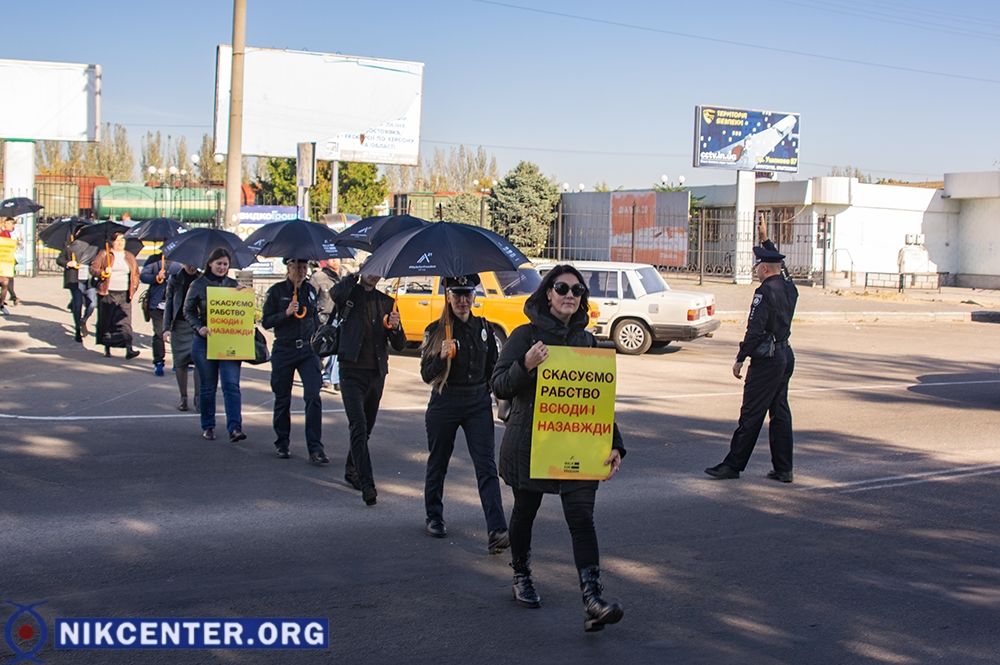 В Херсоне провели шествие с зонтами по случаю Европейского дня борьбы с торговлей людьми. ФОТО