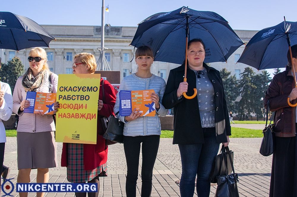 После шествия прошел тематический круглый стол. Там было сказано, что с начала года на Херсонщине зарегистрировано пять уголовных производств по ст. 149 Уголовного кодекса Украины — «Торговля людьми».