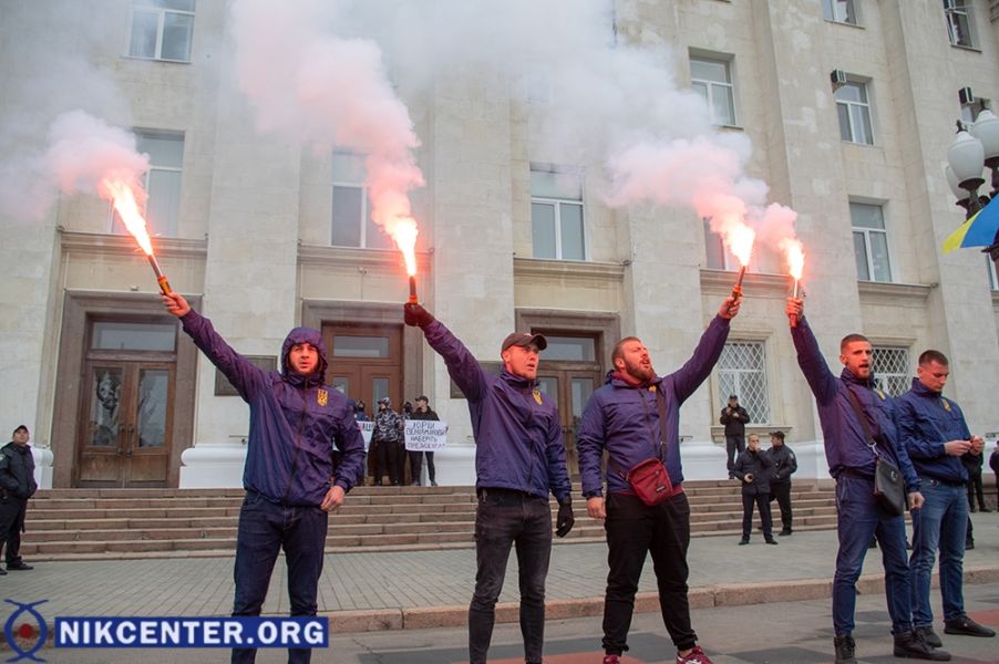 Активисты Нацкорпуса принесли к Херсонскому облсовету виселицу и жгли файеры. ФОТО
