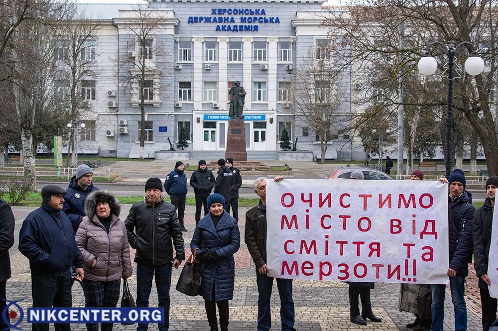 Около 50-ти человек приняли участие в протестном пикете, проведенном возле зданий Херсонского горсовета и Херсонской облгосадминистрации.