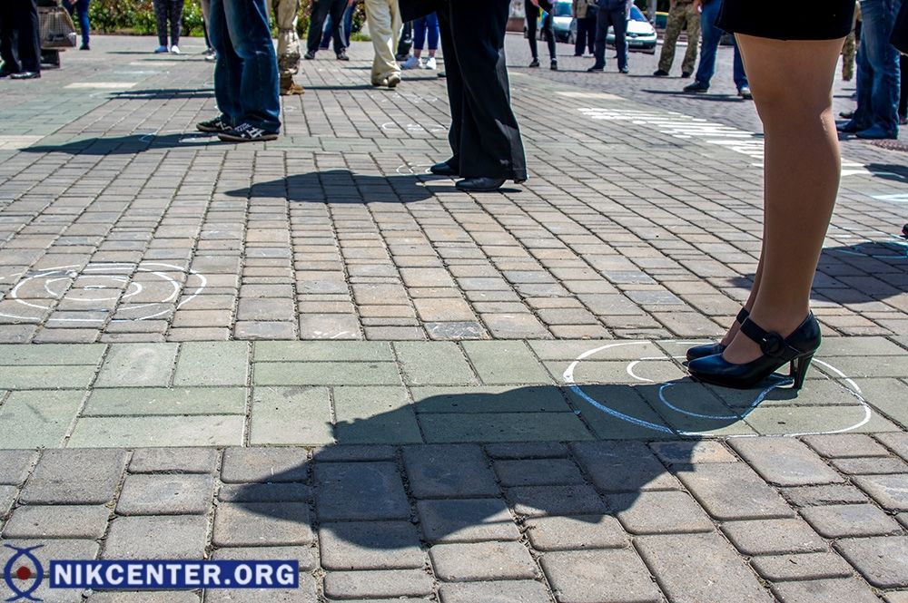 Акция в Херсоне прошла с соблюдением норм, установленных для массовых мероприятий, проводимых на улице. В частности, организаторы акции заранее разметили место ее проведения для размещения там людей на безопасном расстоянии друг от друга. Также все участники акции были в защитных масках.