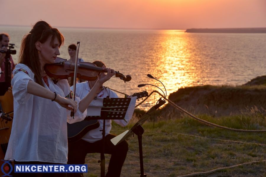 На берегу лимана музыканты оркестра театра и вокалистки Наталья Вишневская и Виктория Кириченко представили концерт-спектакль, в программе которого были оркестровые и вокальные музыкальные номера. Исполнялись преимущественно произведения украинских авторов.