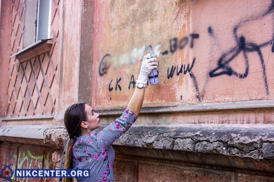 Участники акции провели рейд по центральной части Херсона, во время которого закрашивали надписи на стенах – рекламы онлайн-ресурсов, с помощью которых распространяются наркотики.
