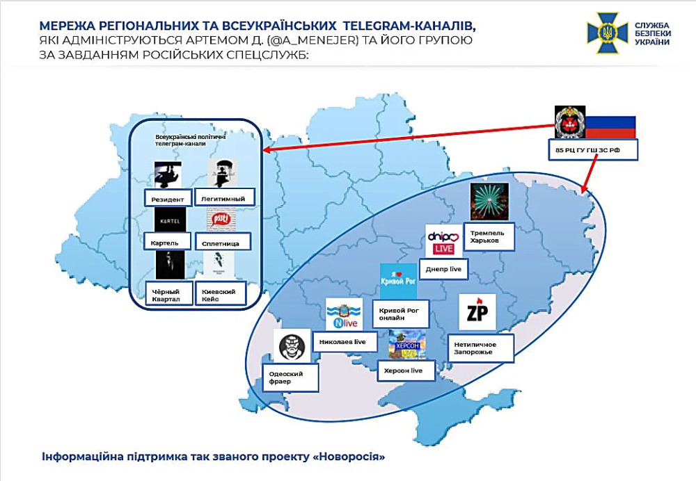 Спецслужбы страны-агрессора привлекли украинских граждан к созданию и администрированию ряда политических всеукраинских и региональных Telegram-каналов. Речь идет о каналах «Легитимный», «Резидент», «Картель», «Сплетница», «Черный квартал», «Политический расклад», «Нетипичное Запорожье», «Тремпель Харьков», «Одесский фраер», «Днепр live», «Николаев live», «Херсон live».