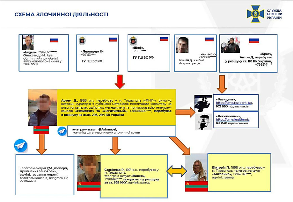Фигурант лично администрирует 12 Telegram-каналов, общается с заказчиками материалов, отчитывается российским кураторам о проделанной работе и согласовывает возможность размещения заказных материалов. Стоимость размещения публикаций составляет от нескольких сотен в региональных и до 25-30 тысяч гривен на всеукраинских каналах.