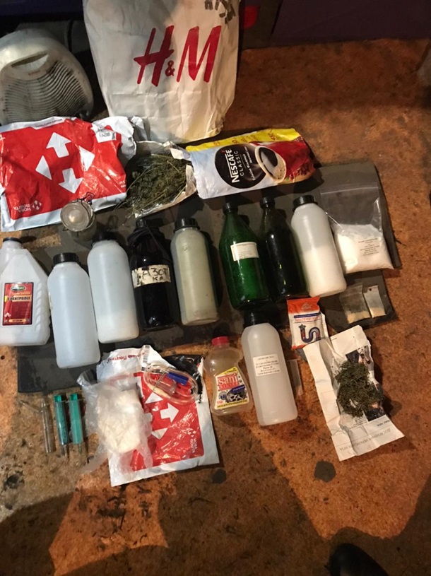 Во время проведения обысков в местах проживания фигурантов правоохранители нашли вещества белого и розового цветов (предварительно — амфетамин), измельченную коноплю, прекурсоры. А также самодельные взрывные устройства, оружие и боевые патроны различного калибра.
